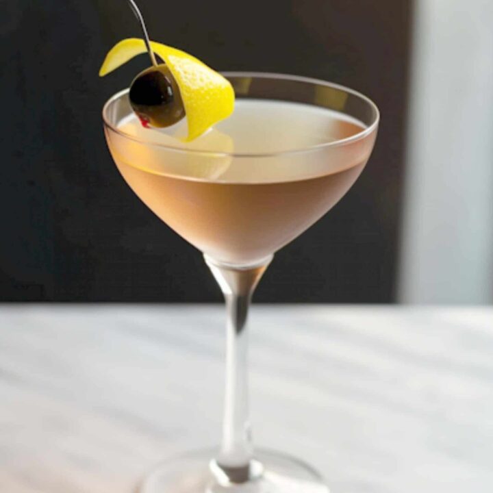 This drink recipe has changed a lot over the years as bartenders tweaked it. It’s a classic gin and vermouth cocktail.