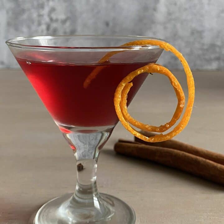 - Strain out the cinnamon bark and cloves, and serve it in cordial cups garnished with a twist of orange or lemon.