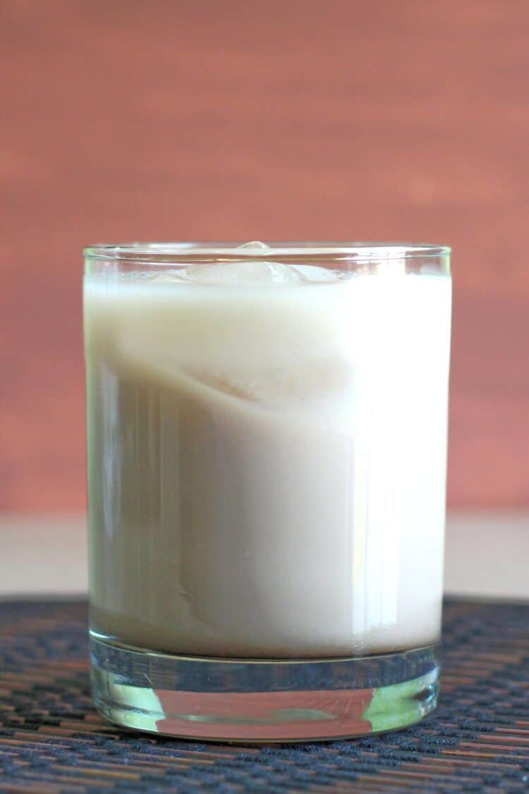 You can make this drink recipe the way bartenders do. They shake all the ingredients together and then strain it into a glass. Shaking is recommended for all drinks containing dairy (or egg).
