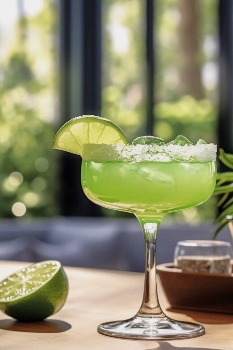 The Key West Margarita is a tasty blended margarita recipe that uses Midori and pina colada. This makes for a flavor that’s smooth and bold with just a touch of lime to wake it up. The dash of grenadine adds just a hint of berry.