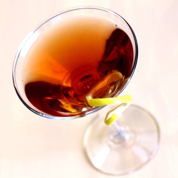 The Affinity Cocktail is an old-school style cocktail, with no fruity liqueurs or fancy herbs. It features two fearsome ounces of scotch, plus dry and sweet vermouth, so it’s technically a double.